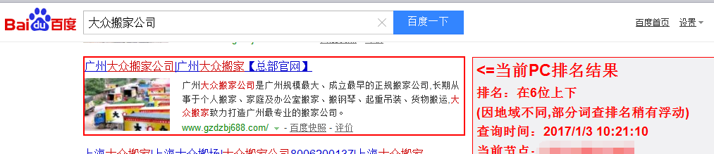 关键词现排名:百度首页第六