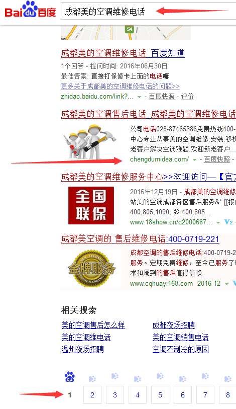 空调现在来讲可以说是各家各户都有的一种家用大型电器,并且美的空调一直占据市场中的大部分地市。既然是一种家用电器,那么我们必然躲不了他的维护保养,如果我们的维护保养工作做不好,那么我们的空调就会出现故障。在此,成都就有一家专业美的空调维修中心,并且在16年11月份委托我们北京网站优化公司将网站www.chengdumidea.com中的关键词“成都美的空调维修电话”优化至百度搜索引擎的首页,现如今,我们已经成功的将网站关键词优化至百度首页,下面我们就来为您介绍关键词快速上首页的方法秘诀:
